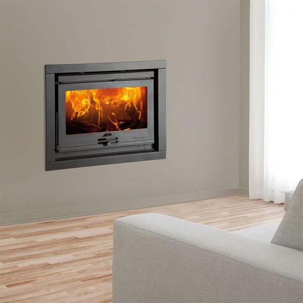 - Rendement 78,3%. Insert multi-combustibles avec porte vitrée moderne