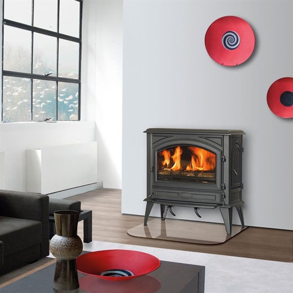 - Option : couleur émaillée (noir mat-ivoire-vert-charbon de bois-bleu royal-majolica brun-majolica vert) - Prise d'air extérieure - Plaque cuisinière - trémie pour charbon.