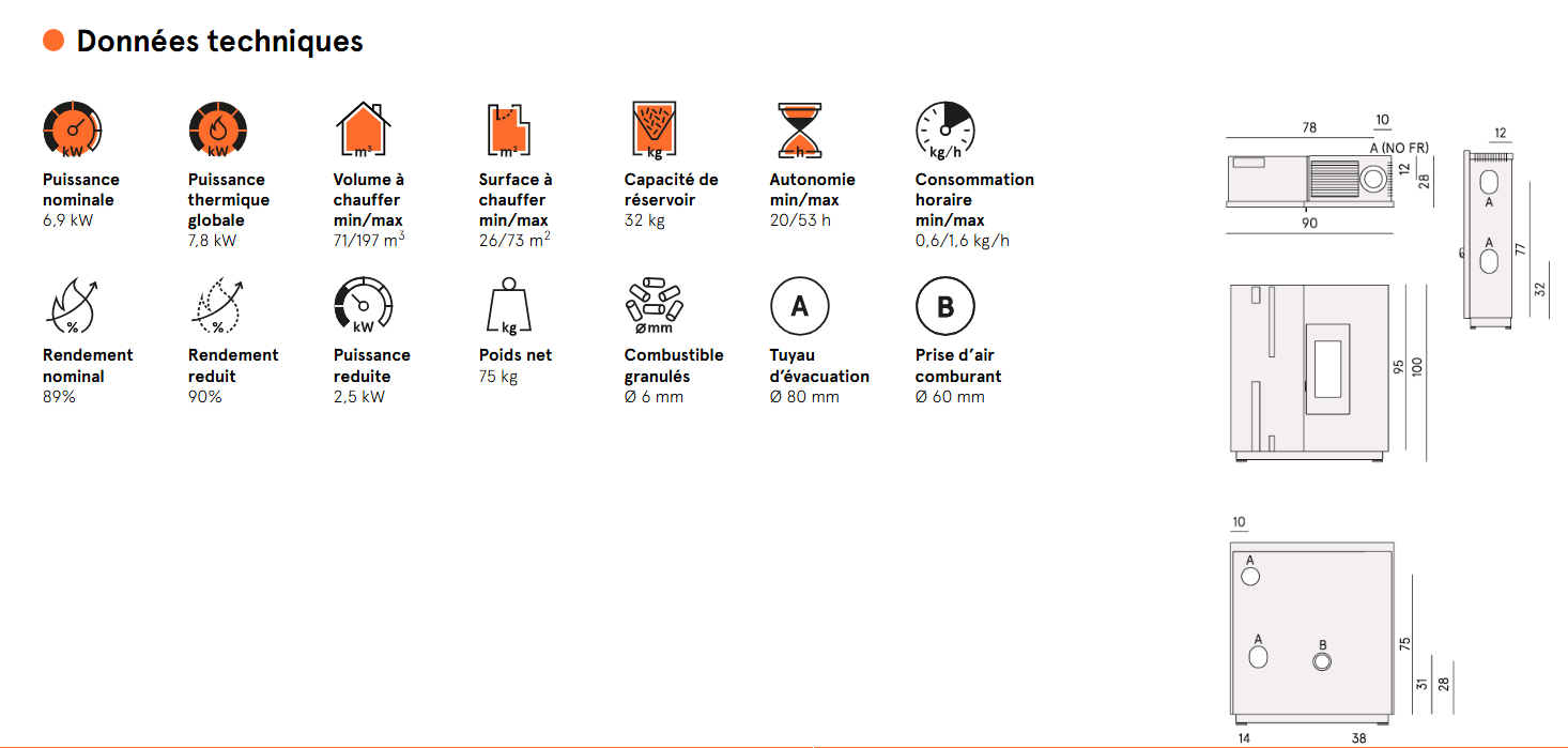 Grâce à son maxi réservoir de 32 kg, autonomie de combustion de 50 heures, soit 3 à 6 jours