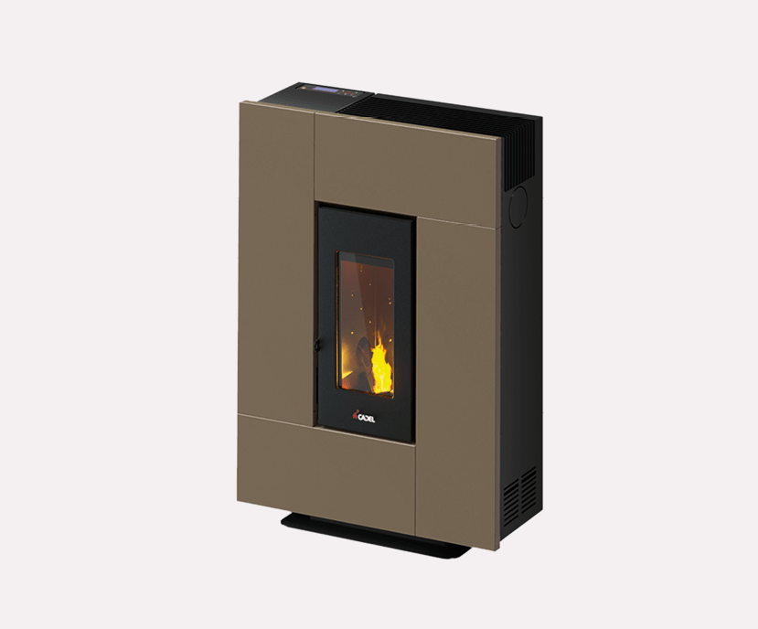 Grace 7 Un poêle à pellet très déco. Son design est élégant et contemporain et il peut s’insérer dans un espace restreint, grâce à une profondeur de 27,5 cm seulement. Un kit pour la fixation au mur est notamment proposé.