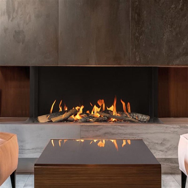 d’ambiance ultime. La vitre sans cadre de ce foyer a trois côtés vous permet de