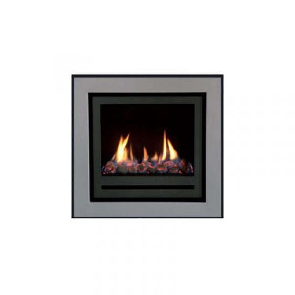 H 610/L 525/P 365 mm - Diam cheminée 107 mm - Vol chauffe : max 113 m3 - Chauffage principal. Foyer encastrable au gaz - Ventilateur - Système de combustion à tirage naturel - Flamme visible - Double brûleur - Thermostat digital - Télécommande RF - Décoration : charbons, galets, sarments.