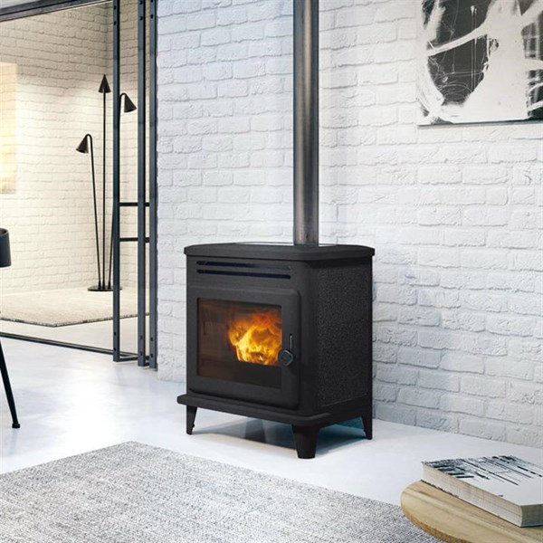 Poêle à pellets. Complètement en fonte avec foyer en fonte.