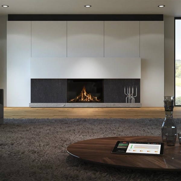 Le Maestro Eco Wave de DRU est réellement la dernière version de la conception du foyer à gaz contemporain. Ces foyers exceptionnellement grands ont les feux de bûches les plus réalistes jamais produits. Maestro 100 est le modèle avec vitre avant standard d’un mètre de large avec des intérieurs en noir lisse, brique classique ou Ceraglass vitrifié et fenêtres Clear Windows qui reproduit l’image d’un feu ouvert.