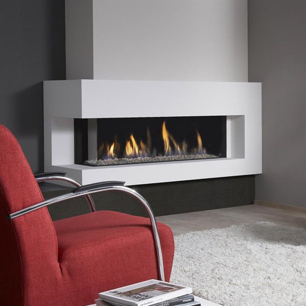Foyer à gaz encastrable à raccordement mural en coin : GAUCHE ou DROIT