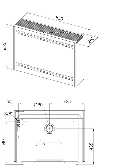Connexion cheminée (sortie fumée) : diamètre 90 mm
