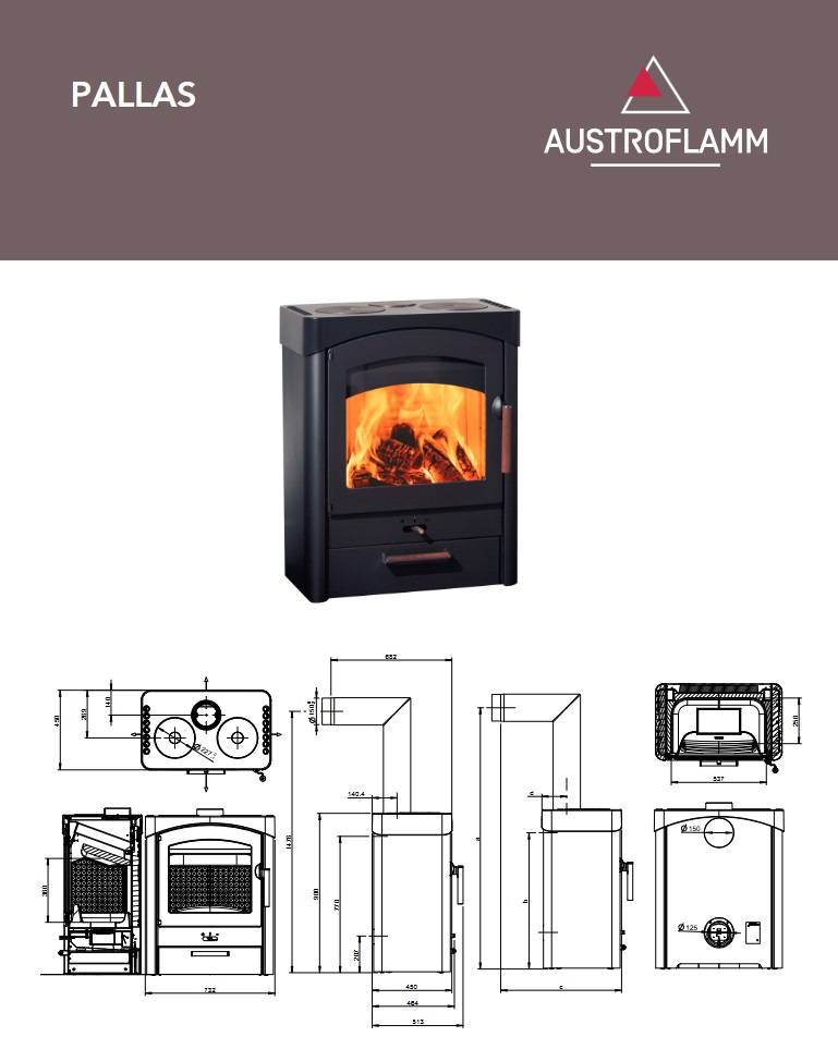 Envie d’un feu de cheminée romantique, d’une tasse de thé et pourquoi pas de manger un morceau ? C’est possible, avec le Pallas ! Il n’est pas seulement une charmante source de chaleur : avec ses 3 plaques de cuisson,