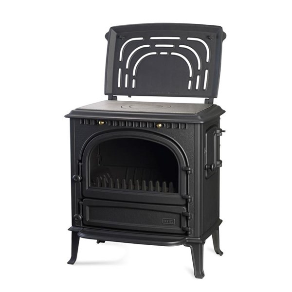 H 800/L 710 /P 580 mm - Poids 192 kg - Diam cheminée 150 mm - Rendement 77% ,Poêle à bois - Classique avec plaque de cuisson en fonte - Foyer en fonte - Longeur de bûches 50 cm - Système de double combustion - Système de désenfumage de vitre - Sortie des fumées à l'arrière - Couleur : Anthracite - Option: Couleur brillant bleu nuit - Set de bouton décoratif chromés - Plaque de sol ronde - Plaque de sol carré à coins coupés