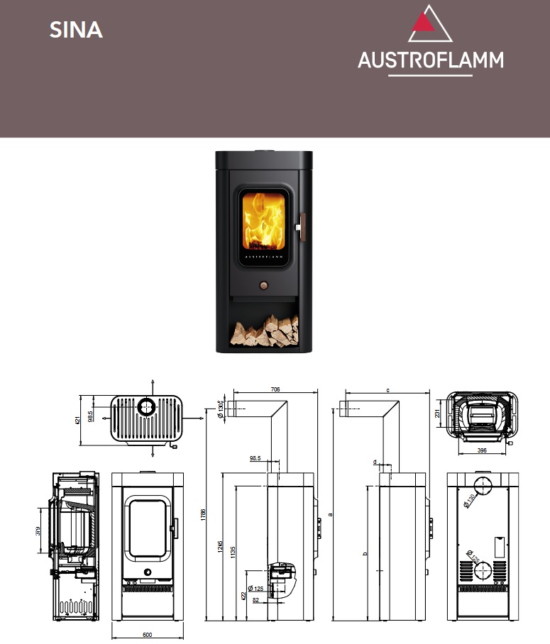 Cote c (avec tuyau coudé Austroflamm) [mm] 706