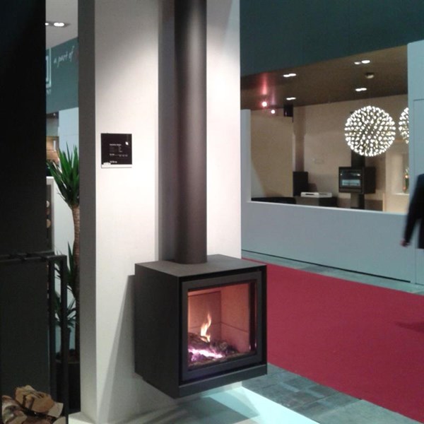 H 678 /L 580 /P 506 mm - Poids 113 kg - Diam cheminée 180 mm - Rendement 75%. Poêles à bois suspendu - Sobre et épuré - Lignes pures - Longueur de bûches V - / H 40 cm - Fonctionne exclusivement porte fermée - Système de nettoyage par balayage de la vitre - Double combustion - Admission pour l’arrivée d’air extérieur canalisable diam 63mm - Connexion au conduit sur le dessus.