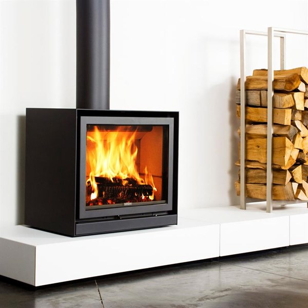 H 610 /L 780 /P 456 mm - Poids 121 kg - Diam cheminée 180 mm - Rendement 75%. Poêles à bois - Sobre et épuré - Lignes pures - Longueur de bûches V - / H 60 cm - Fonctionne exclusivement porte fermée - Système de nettoyage par balayage de la vitre - Double combustion - Admission pour l’arrivée d’air extérieur canalisable diam 63mm - Connexion au conduit sur le dessus - Option : Ventilateur - Socle tiroir 60 ou 120cm - Porte bûches tiroir.